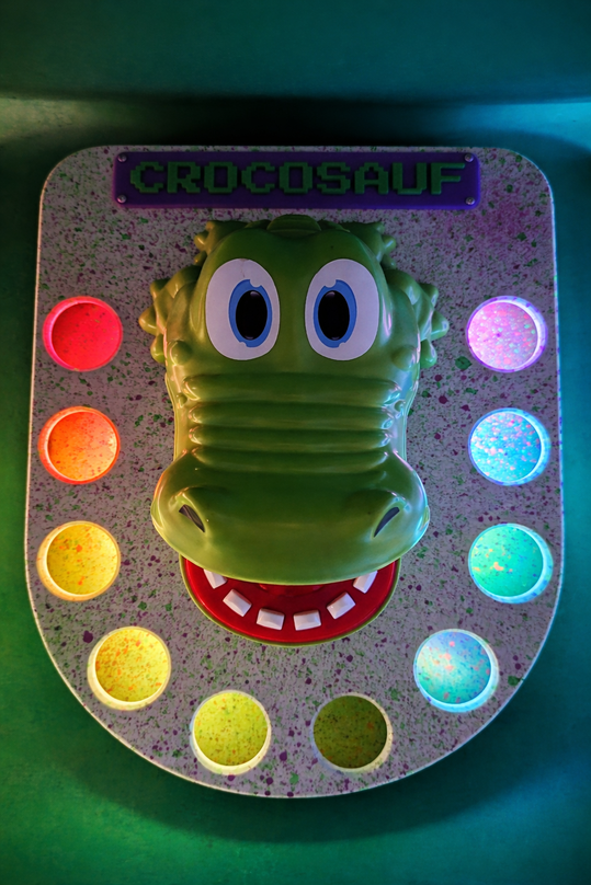 Der Crocosauf Deluxe ist ein handgefertigtes, digitales Spielbrett mit Licht, Sound und integrierter Steuerung. Über einen speziell entwickelten Adapter kann ein passendes Krokodil-Zahnarzt-Spiel einfach aufgesteckt werden, ohne das Originalspiel zu verändern. Verschiedene Spielmodi, LED-Effekte, Sounds und eine Reminder-Funktion sorgen für ein interaktives und besonderes Spielerlebnis.